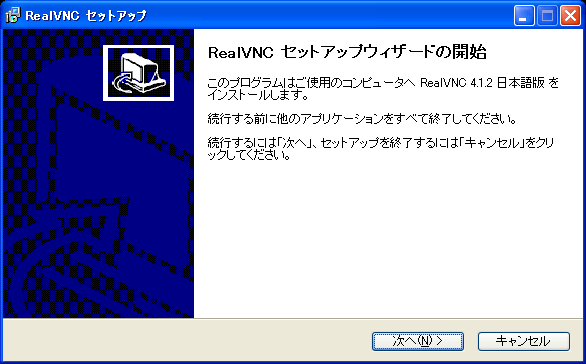スタート→RealVNC→VNC ビューワ 4→VNC ビューワの起動を選択